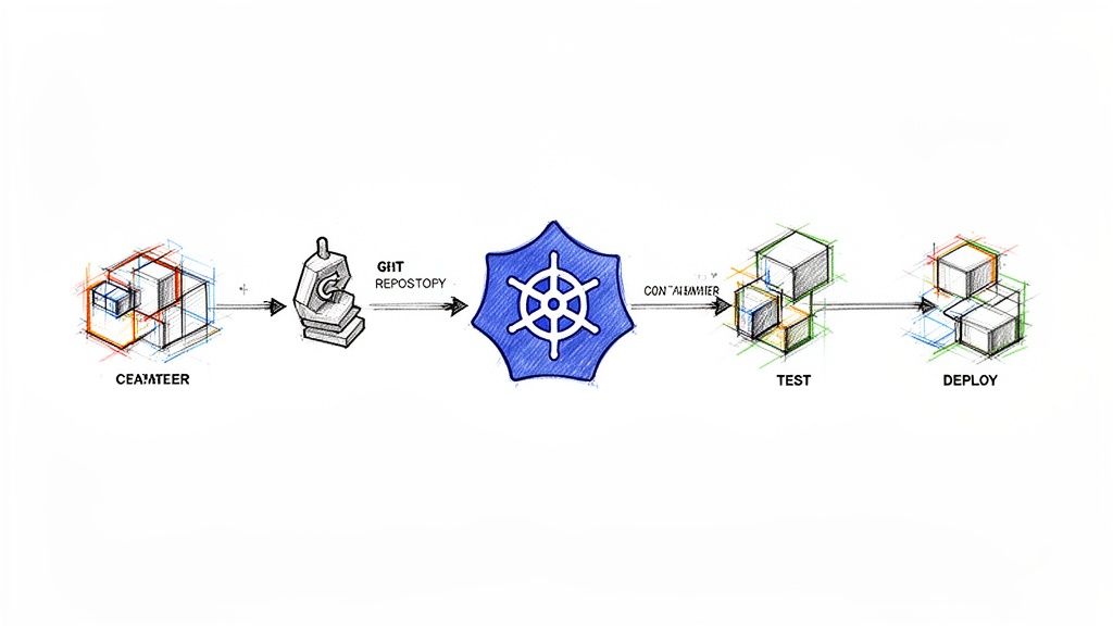 Architecting a Kubernetes CI/CD pipeline is a critical engineering decision. This choice dictates the security posture, scalability limits, and developer experience of your entire delivery platform. The decision is not merely about tool selection; it's about defining the control plane for how code moves from a git commit to a running application pod within your cluster.